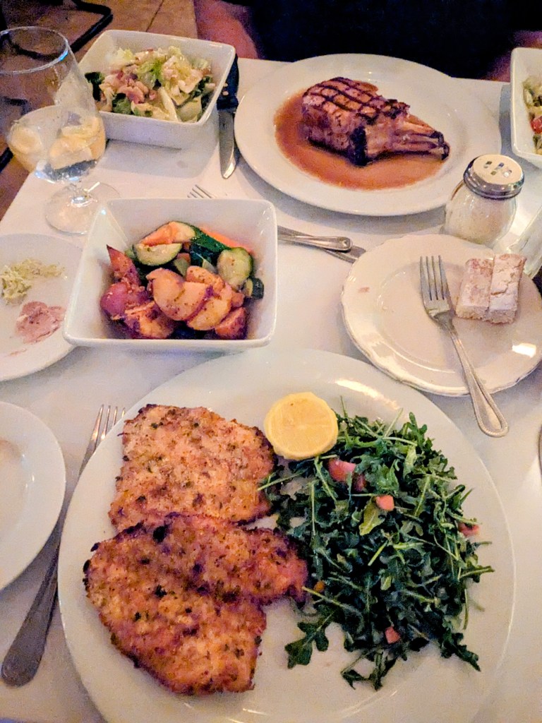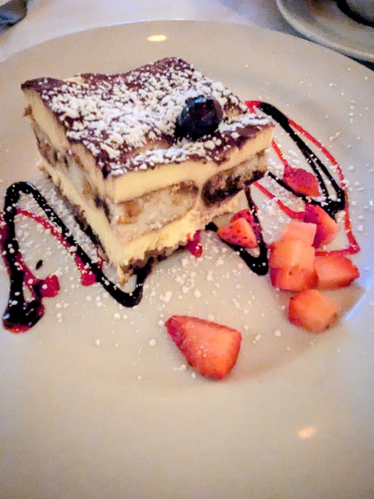 Food was excellent, and the menu is large enough that I really had to close my eyes and just choose something at random, because it all sounded good. We were sitting there over drinks, listening to the pianist and the singer get started, while the room started to take on the buzz of happy diners, and all the stress of the day just drained away. It was relaxed and fun, and the whole atmosphere just wraps around you like a happy cocoon. If we lived anywhere near there, it would be a regular spot, even if it was just to have a drink at the bar after work. They were doing a brisk takeout business, and that would still be good, but it couldn’t ever match the atmosphere of being there.